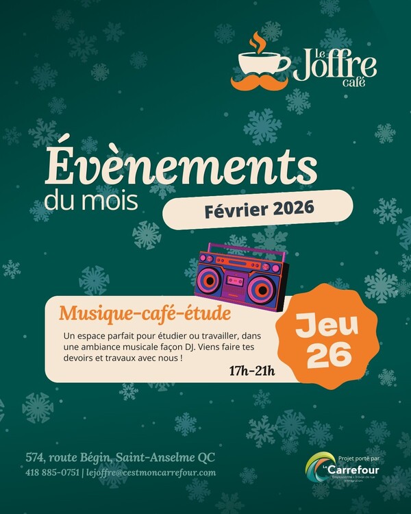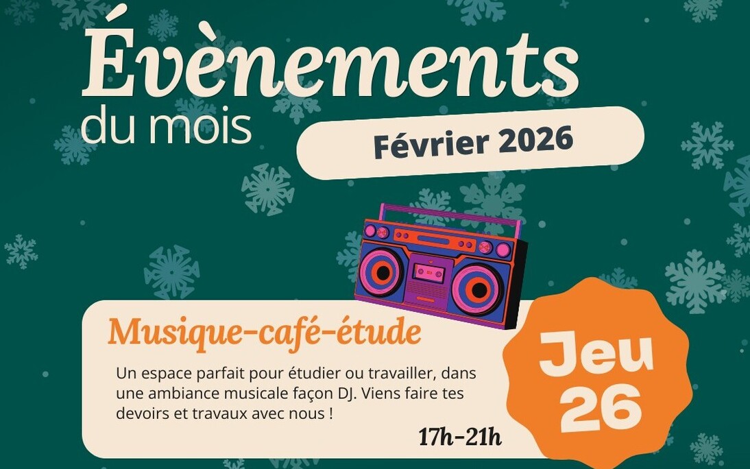 Installe-toi, révise sans stress et profite d'une ambiance chill pour avancer dans tes cours. Sur place : musique d'ambiance style DJ, puis breuvages et collations en vente sur place pour te garder motivé·e.