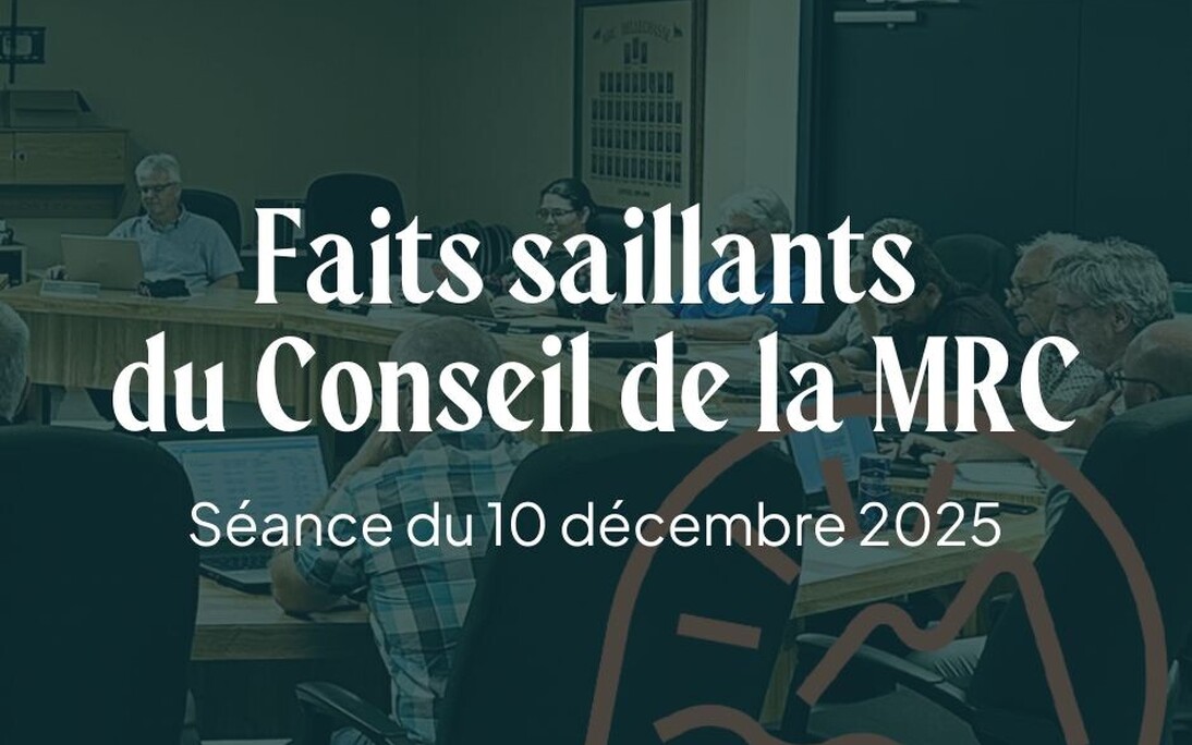 Soulignons qu'en plus des attributions à ces comités internes, les élus et élues ont également procédé à quelques nominations sur des comités externes : Jean Malo siègera au Conseil régional du patrimoine de la MRC ainsi qu'au Comité consultatif culturel, tandis que Guylaine Gagnon a été désigné au Comité consultatif régional Chaudière-Appalaches et que Cynthia Lapointe représentera la MRC de Bellechasse sur le conseil d'administration de la SADC Bellechasse-Etchemins.