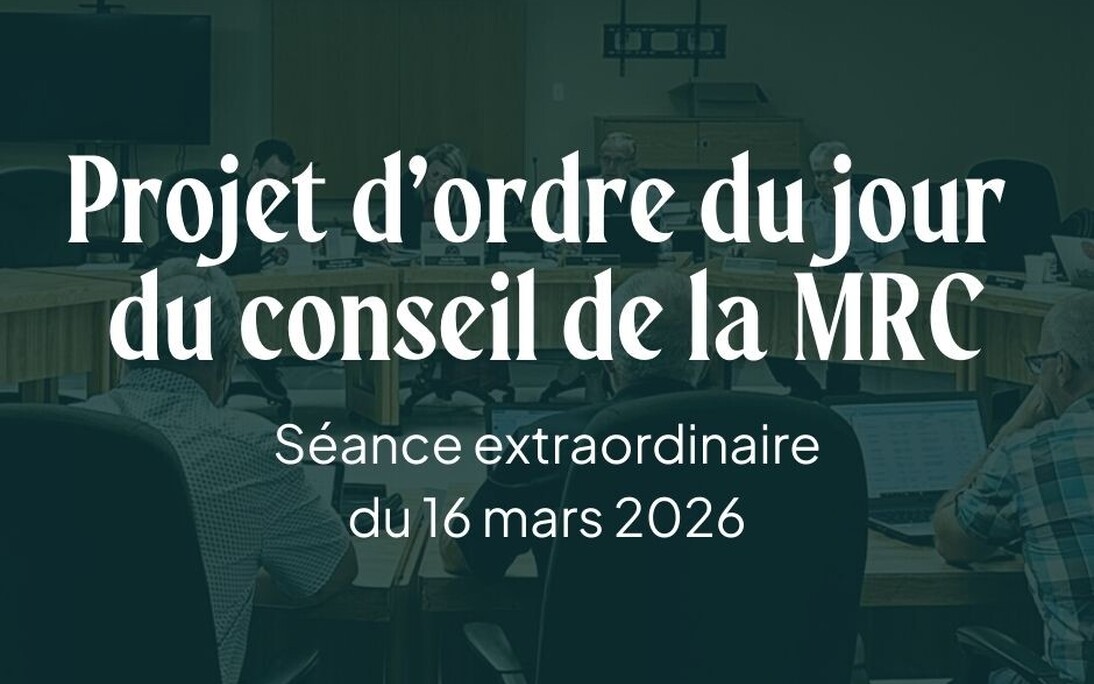 Il y aura une séance extraordinaire du Conseil de la MRC de Bellechasse ce lundi 16 mars prochain à 17h30. Les citoyens et citoyennes souhaitant assister à la séance sont les bienvenus.